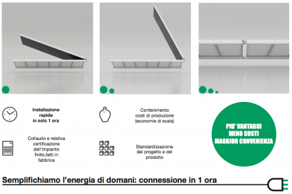 Il grande modulo fotovoltaico integrato di ultima generazione riesce inoltre a produrre +20% graziose all’utilizzo di una innovativa tecnologia a marchio RenFactory che unisce l’uso di innovativo Micro-Iverter con un nuovo brevetto esclusivo dell’azienda padovana.